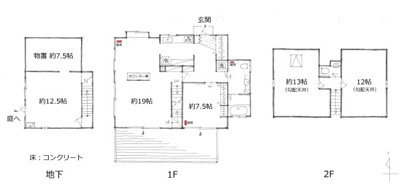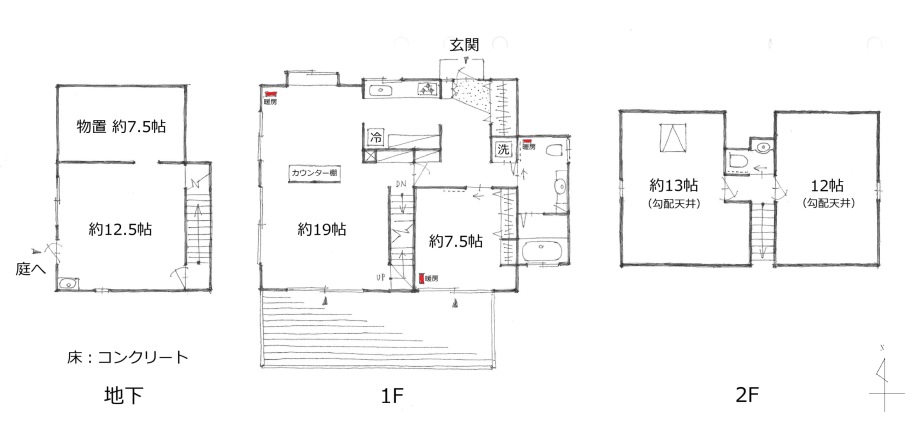 | 現状 | 空き家 | 暖房 | 1F灯油式温水ヒーター、他は置き型ストーブ |