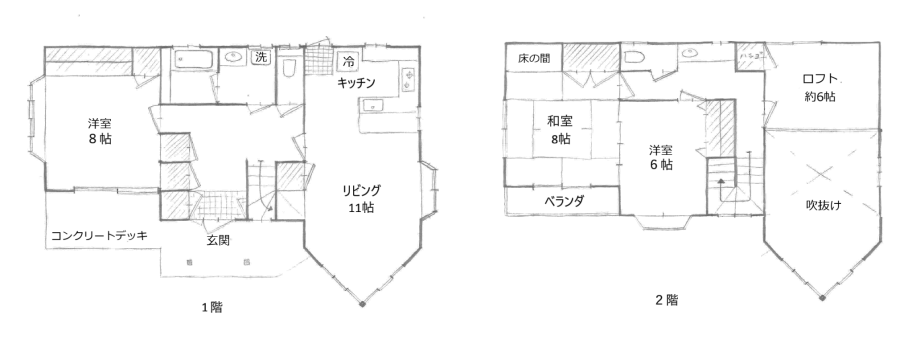 | 設備 | 全室ペアガラス、コンクリートデッキ、2Fベランダ、屋根裏に物置、トイレ2か所、洗面台2か所、コの字型キッチン、勝手口、収納多、外水道あり。 | ||